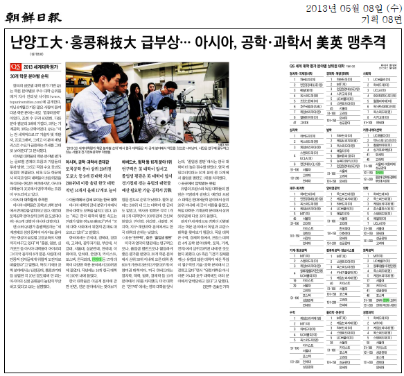 8일자 <조선일보>에는 QS에서 발표한 학문 분야별 순위를 분석한 기사가 게재되었습니다. 영국의 글로벌 대학 평가 기관인 QS는 자사 인터넷 사이트(www.topuniversities.com)를 통해 30개 학문 분야별로 대학 순위를 공개했는데요, 아시아 대학들의 약진이 돋보였고, 특히 한국의 대학들이 이공계에서 강세를 보이고 있는 것으로 분석했습니다. 순위에서 1위부터 50위까지는 각 개별 순위가 공개되지만 51위부터는 50개 단위로 묶어서 발표가 되었습니다.