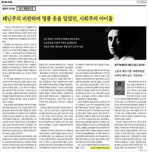 임지현 한양대 사회학과 교수가 쓴 '로자 룩셈부르크' 기고글이 5월 18일자 <조선일보>에 실렸습니다. 임 교수는 '마르크스 이래 최고의 두뇌'로 불린 로자 룩셈부르크에 대해 폴란드 독립까지 반대한 계급주의자이지만 괴테, 모차르트, 베토벤 예술을 즐긴 모순적인 인물이라고 표현했습니다.