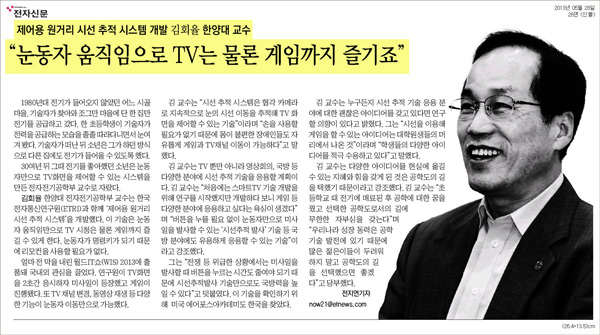 | ▲ 5월 28일자 <한국대학신문> '제어용 원거리 시선 추적 시스템 개발' 김회율 교수 인터뷰 | ||