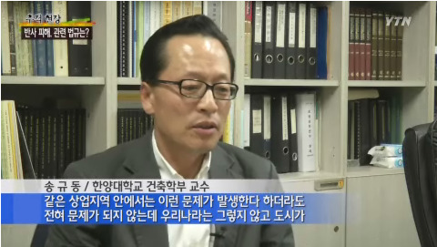 송규동 한양대 건축학부 교수는 "같은 상업지역 안에서는 이런 문제가 발생한다 하더라도 전혀 법적인 문제가 되지 않는데 우리나라는 그렇지 않고 도시가 확장되면서 상업지역과 주거지역이 상당히 혼재돼 있다"며 "법적인 소송까지 발전할 수 있는 환경"이라고 밝혔습니다.