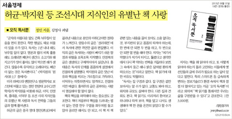 | ▲ 6월 1일 <서울경제> 정민 교수 '오직 독서뿐' 출간 | ||