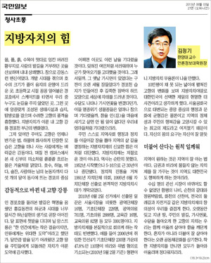| ▲ 6월 3일 <국민일보> 김정기 교수 '지방자치의 힘' 기고 | ||