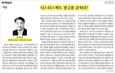 | ▲ 6월 3일 <세계일보> 최준환 교수 '디스리스펙트 광고를 許하라!' 기고 | ||