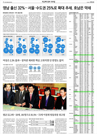 6월 4일자 <동아일보>는 1급이상 공직자 281명 전수조사 특집 기사를 게재했는데요. 자료에 의하면 고위공직자의 평균 나이는 55세이며 출신 대학은 서울대가 96명(34.2%)으로 가장 많았고 연세대가 26명으로 뒤를 이었습니다. 한양대 출신은 서울대, 연세대, 고려대, 성균관대에 이어 5번째로 많은 17명이 1급이상 공직자에 오른 것으로 나타났습니다.