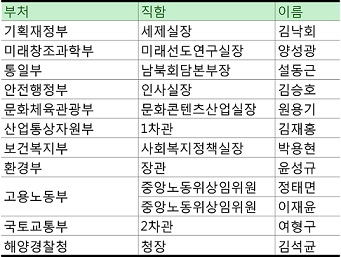 박근혜 정부 파워엘리트 221명 중 한양대 출신 12명의 부처와 직함을 살펴보면 다음과 같습니다.
