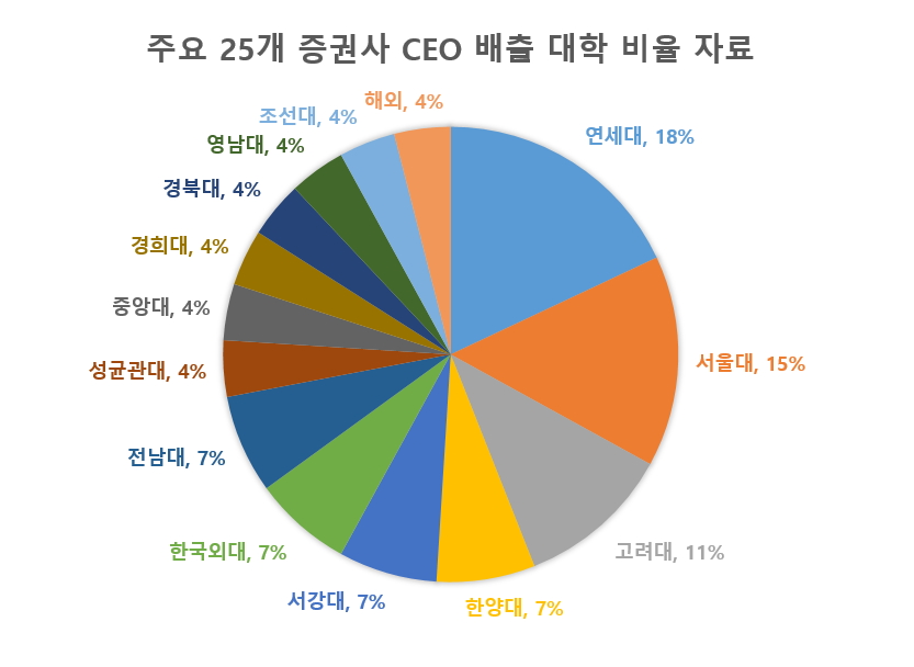 국내 상위 25개 증권사 조사... 한양대 7%(2명)