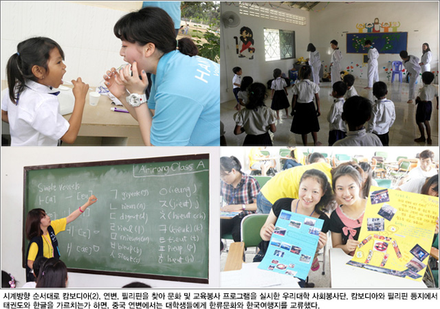 ‘한양해외봉사’는 글로벌 역량을 갖춘 봉사리더를 배출하고, 국경 없는 봉사활동을 촉진하기 위한 해외봉사 프로그램으로 매년 다양한 프로그램이 기획된다. 올해 여름에는 중국 상해, 연변 문화봉사, 캄보디아 문화봉사, 인도네시아 해비타트 건축 및 문화봉사가 진행될 예정. 현재 5개팀 136명이 선발된 상태다. 한은순 직원(사회봉사단 행정팀)은 “지난 4월 오리엔테이션에서 기본 프로그램 및 위생교육을 마쳤고 국가별 해당하는 예방접종도 마친 상태”라고 근황을 전했다. 선발된 학생들은 출국 전까지 매주 팀 별 프로그램 준비시간을 갖고 한국어와 한국문화에 대한 세부수업계획, 현지에서 선보일 태권무, 사물놀이, K-POP 등 다양한 공연준비에 매진하고 있다.