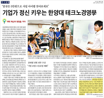 | ▲ 6월 19일 <한경신문> '기업가 정신 키우는 한양대 테크노경영學' 기사 | ||