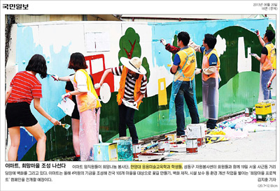 | ▲ 6월 20일 <국민일보> 벽화 봉사 참여한 한양대 응용미술교육학과 학생들 | ||