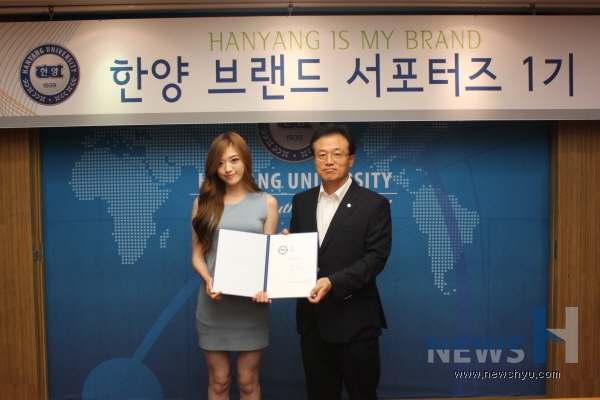 | ▲ 6월 20일 한양 브랜드 서포터즈 1기의 발대식에서 선우명호 경영부총장이 단원들에게 임명장을 수여하고 있다. | ||
