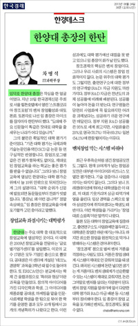 | ▲ 6월 24일 <한국경제> 한양대 총장의 한탄