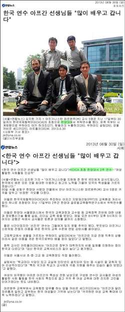 | ▲ 6월 30일 <연합뉴스> 한국 연수 아프간 선생님들 "많이 배우고 갑니다" 기사 | ||