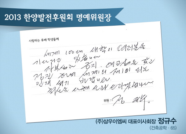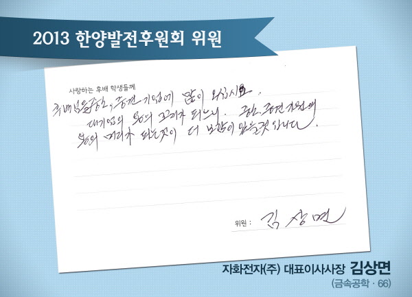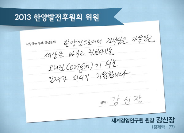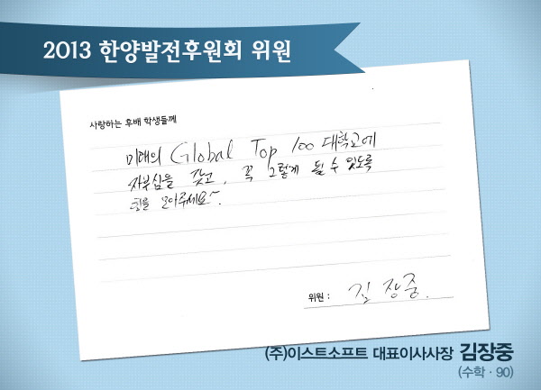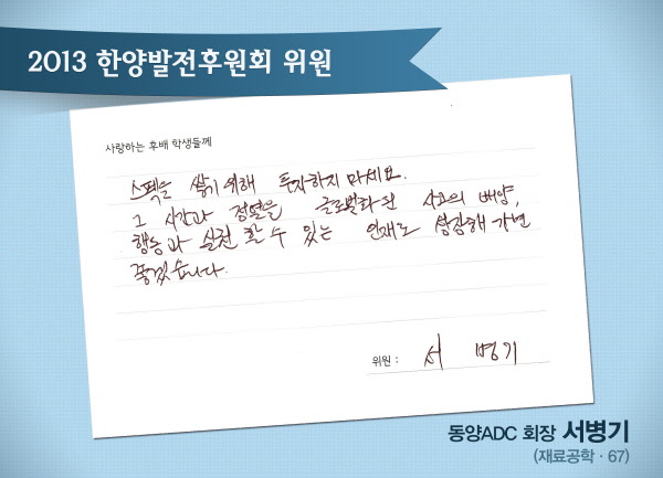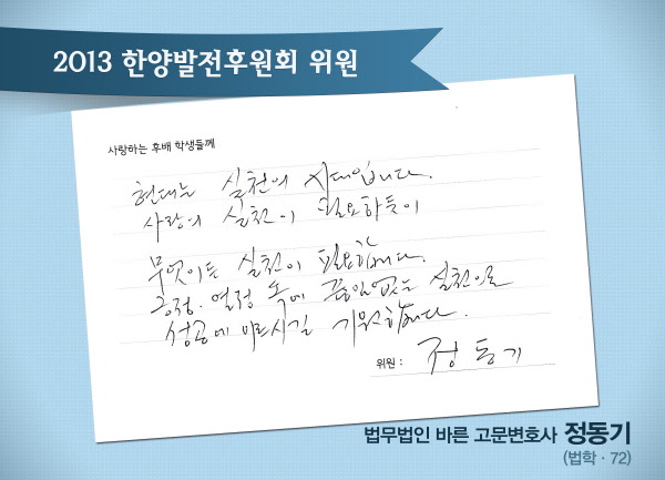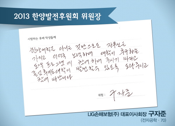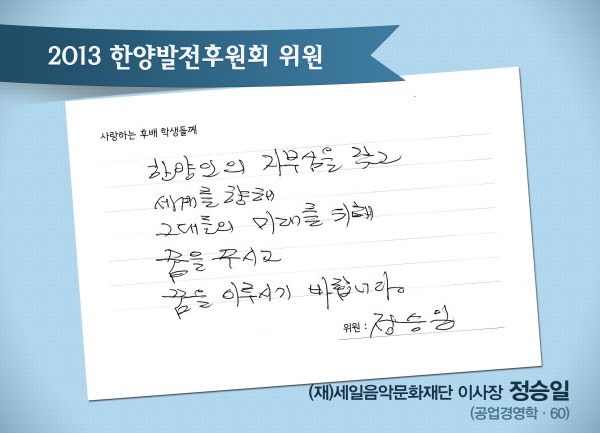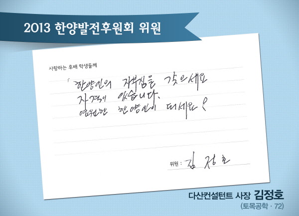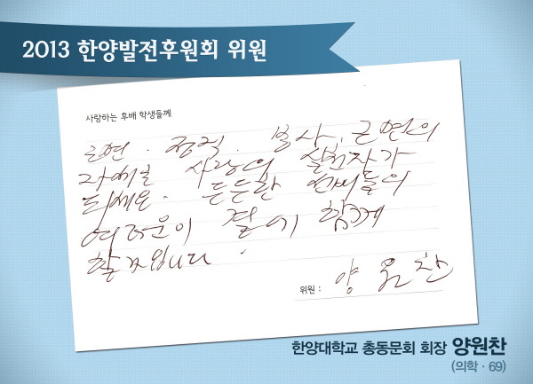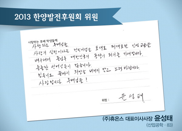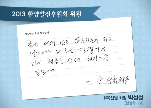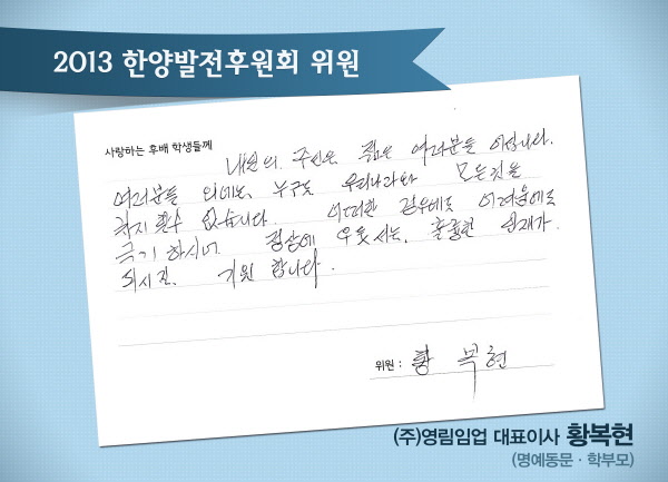 한양발전후원회 13인이 후배들에게 남기는 응원과 격려의 메세지
