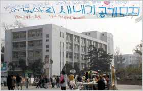 지난 12일부터 14일까지 3일간 서울캠퍼스에서는 '03년도 동아리 새내기 공개모집'이 진행됐다. 동아리연합회(이하 동연) 주관으로 열린 이번 공개모집은 총 78개 동아리가 참여한 가운데 한마당과 직녀관 및 사회대 앞에서 진행됐다. 공개 모집에 참여한 동아리들은 03학번 새내기의 '신심(新心)'을 잡기 위해 그동안 준비해 온 다양한 이벤트를 선보이는 등 예년과는 다른 이색적인 홍보전으로 주목을 끌었다.