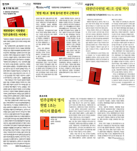 | ▲ <한겨레>, <국민일보>, <서울경제>, <동아일보> '대한민국은 민주공화국이다' 기사