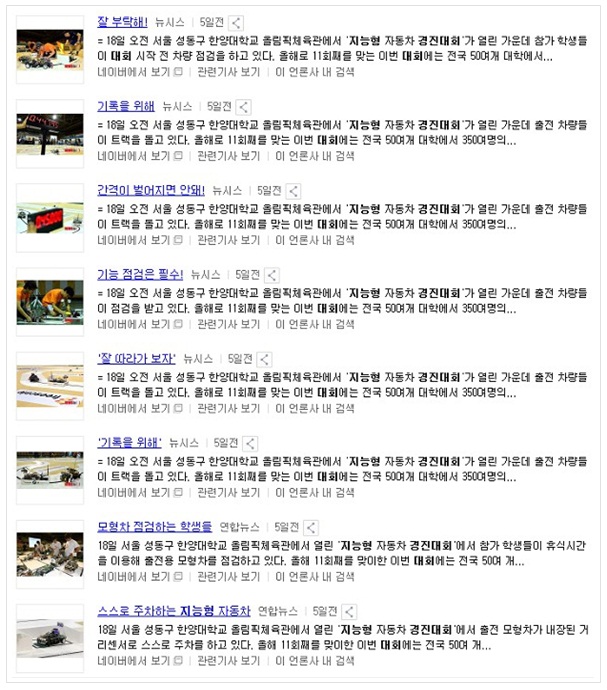 다음은 YTN 뉴스에 보도된 '2013 지능형 모형차 경진대회' 모습입니다.
