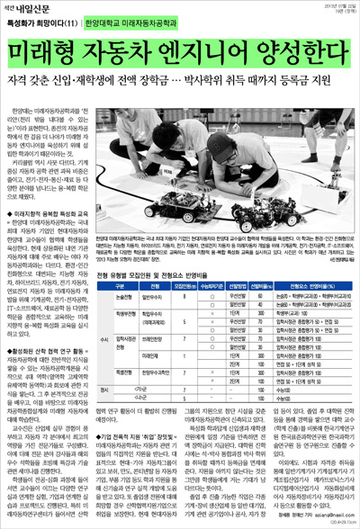| ▲ 7월 22일 <내일신문> 특성화가 희망이다 '한양대 미래자동차공학과'