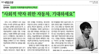 | ▲ 7월 22일 <내일신문> 김선빈 미래자동차공학과 2학년 인터뷰 | ||