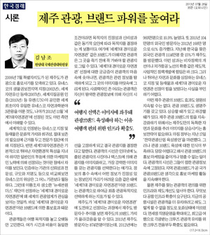 | ▲ 7월 26일 <한국경제> '제주 관광, 브랜드 파워를 높여라' | ||