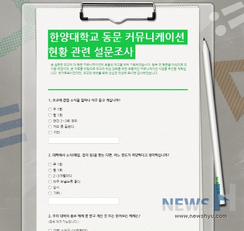 학교내 재학생을 비롯하여 모든 한양 동문들을 대상으로 업무를 하고 있는 대외협력처에서 현재 학교가 구성원들과 어느 정도 커뮤니케이션을 하고 있는지 그 현황을 파악하기 위해 설문조사를 진행하고 있다.