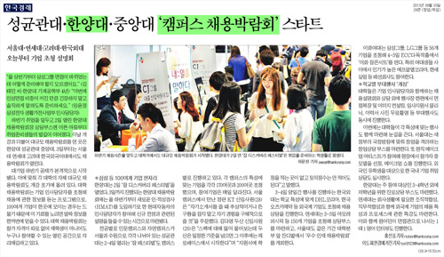 | ▲ 9월 3일 <한국경제> 대학별 '캠퍼스 채용박람회' 기사 | ||