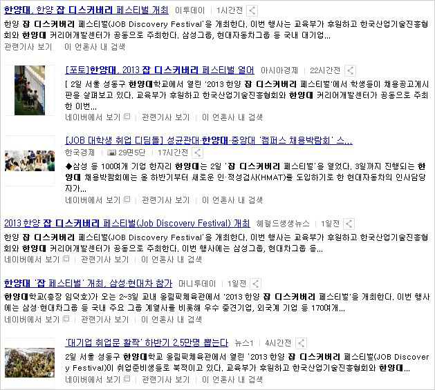| ▲ '한양대 잡 디스커버리 페스티벌' 관련 온라인 뉴스 | ||