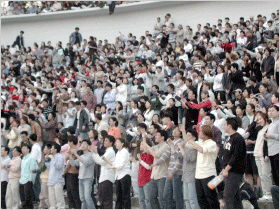 지난 16일 오후 6시 30분, 서울캠퍼스 노천극장에서는 제31대 총학생회 주최로 '한·일 축구 정기전' 공동 응원 행사가 열렸다. '그대, Red 안의 Blue'를 모토로 열린 이번 행사에는 본교에서 유학 중인 일본인 학우 약 20여명이 함께 참가해 더욱 뜻깊은 이벤트가 되었다는 평가다.