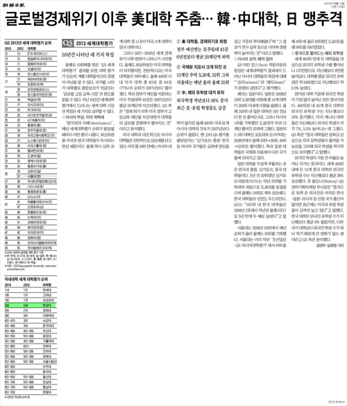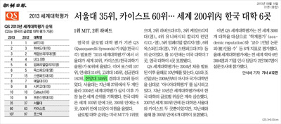 | ▲ 9월 10일 <조선일보> 2013 세계대학평가 순위 | ||