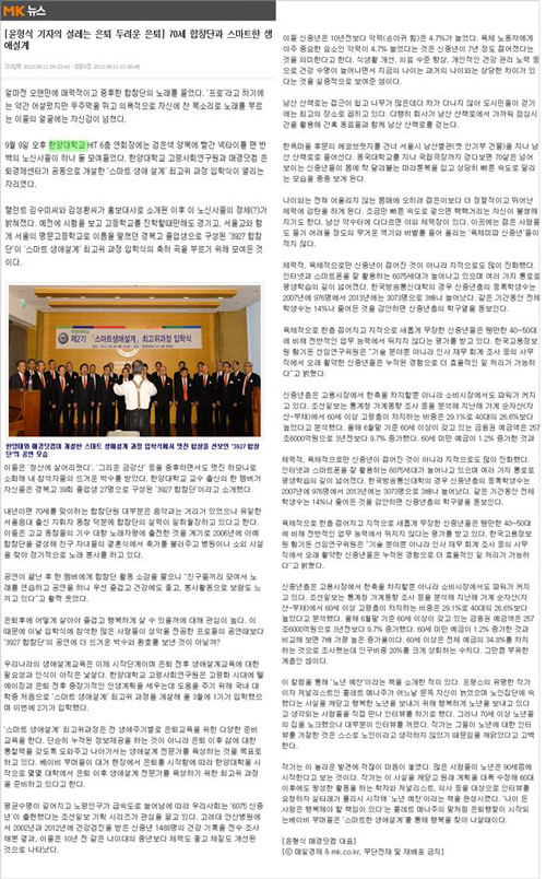 | ▲ 9월 11일 <매일경제> 70세 합창단과 스마트한 생애설계 | ||