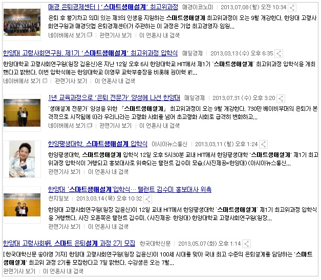 | ▲ 온라인매체에 실린 제2기 '스마트생애설계' 최고위과정 입학식 | ||