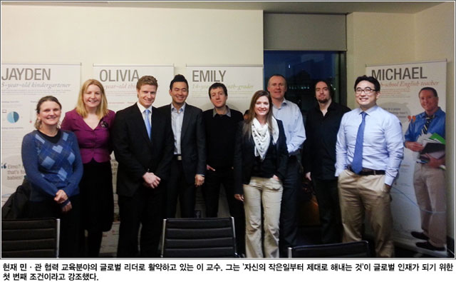 현재 미국 1대 교육사업자 Houghton Mifflin Harcourt(HMH)의 아시아-태평양의 전략제휴업무를 총괄하는 이사(Director)로 재직 중이에요. 아시아 지역에서는 역대 최연소 임원이죠. 삼성전자, 구글(Google), 마이크로소프트(Microsoft), SK텔레콤 등 최첨단 정보통신기술을 보유하고 있는 사업자들을 찾아내서, 이들을 통해 교육 콘텐츠를 사용자에게 효과적으로 전달할 수 있는 방법 등을 연구합니다. 특히 공교육 영역에서 각국의 교육부, 과학부, 유네스코(UNESCO; United Nations Educational, Scientific and Cultural Organization, 유엔교육과학문화기구) 등 정부 및 국제기구와도 협력해 민-관 협력사업 개발도 하고 있어요. 외국어능력은 물론이고 정보통신기술과 교육과학정책 등 다양한 분야에 대한 지식이 복합적으로 필요한 업무입니다.