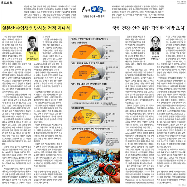 | ▲ 10월 2일 <동아일보> '일본산 수산물' 관련 이재기 교수 기고글 | ||