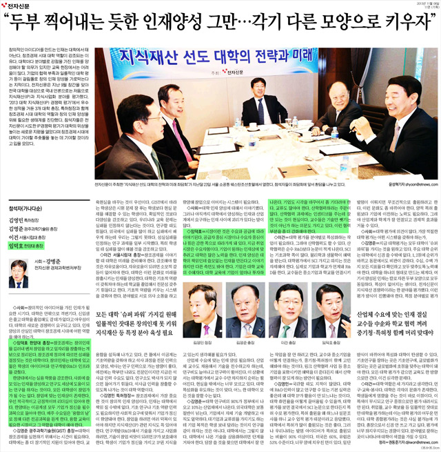 | ▲ 11월 6일 <전자신문> '지식재산 선도 대학의 전략과 미래' | ||
