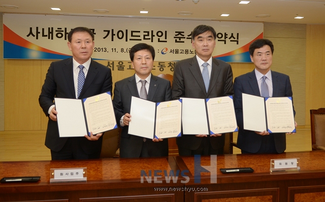 | ▲ 사내하도급 가이드라인 준수협약식 | ||