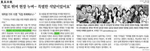 | ▲ 11월 28일 <동아일보> 미디어커뮤니케이션학과 '미디어 현장 교육' | ||