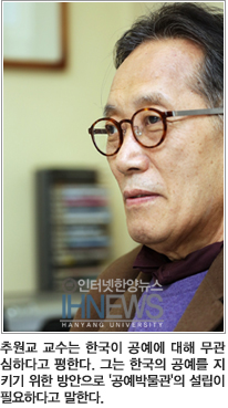 추 교수는 한국사회가 아직 공예에 대한 인식이 부족하다고 말한다. “일본은 한국과 달라요. 일본은 우리나라에서 문화를 많이 가져갔죠. 특히 임진왜란 당시 도요토미 히데요시가 조선에 와서 ‘조선에 있는 장인들은 모두 데려오라’고 지시했던 것은 유명해요. 일본은 문화가 없던 나라였지만, 문화를 만들고, 그 문화를 수호하려고 노력하죠. 하지만 우리나라는 너무나 좋은 문화를 갖고도 버린 것이 많아요. 60,70년대 재개발하면서, 아파트를 지으면서, 전통공예품들을 많이 버렸죠. 요즘은 인사동 가도 좋은 공예품 찾기가 어려워요.” 전통공예는 문화이자 역사다. 공예를 잃는 것은 역사를 잃는 것이다.