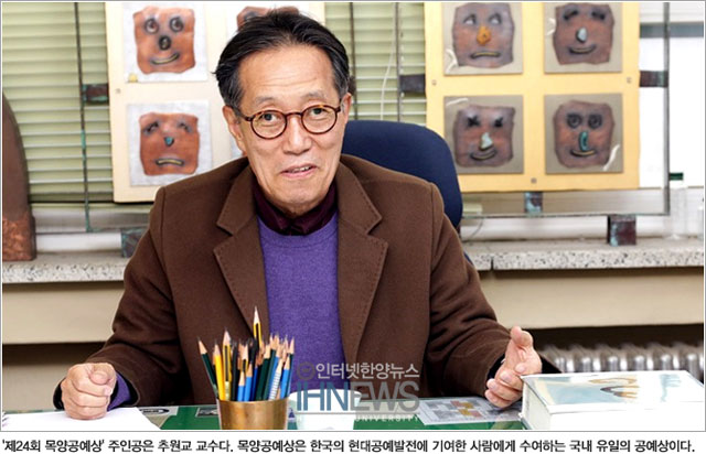 목양공예상은 한국의 현대공예발전에 기여한 사람에게 수여하는 국내 유일 공예상이다. 2013년 제24회 목양공예상의 수상자가 바로 추원교 교수다. “감사하고 영광이죠. 특히 젊은 공예가들이 저를 추천한 것으로 알고 있습니다. 섬유공예, 목공예 등 다른 분야에서도 제가 받아야 한다고 후보를 내지 않았다고 전해 들었는데, 모든 공예가들에게 감사할 일이죠.”