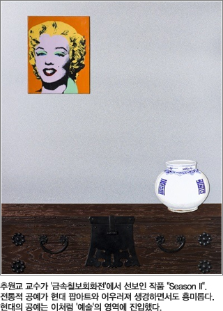 추 교수는 지난 8일까지 인사동에서 개인전 ‘금속칠보회화展’을 열었다. ‘금속칠보’라는 공예 기술을 예술의 영역인 회화로 표현한 전시회였다. “칠보는 금속판에 색깔을 넣는 것이에요. 이집트에서 사용한 공예품에, 중세시대 왕들의 왕관에 쓰인 기술이죠. 이번 전시회는 공예에서 칠보 이용해서, 회화로 표현해보자는 생각에서 출발한 전시회입니다. 공예를 예술적 양식으로 표현하고, 예술을 다양한 표현방식 통해 구현한다는 의미를 담았어요.” 이 시대의 공예는 더 이상 생활에 쓰이는 물건에 국한되지 않는다. ‘손맛’ 있는 예술이다.