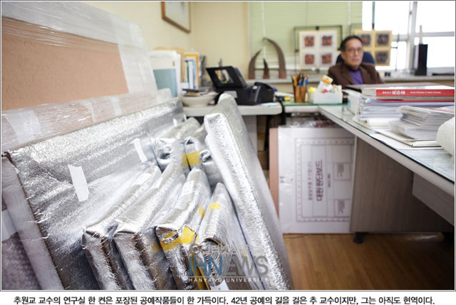 공예의 길 42년. 한 분야에 대한 깊이를 그 분야에 몸담은 시간만으로 평가할 수 없지만, 추원교 교수(디자인대·테크노)가 공예와 함께한 반백 년은 공예에 대한 깊이를 증명하기에 충분한 시간이다. 공예 디자인이 큰 주목을 받지 못하던 1970년대부터 지금까지 ‘공예 외길’을 걸어온 추 교수의 공예이야기를 들어보자.