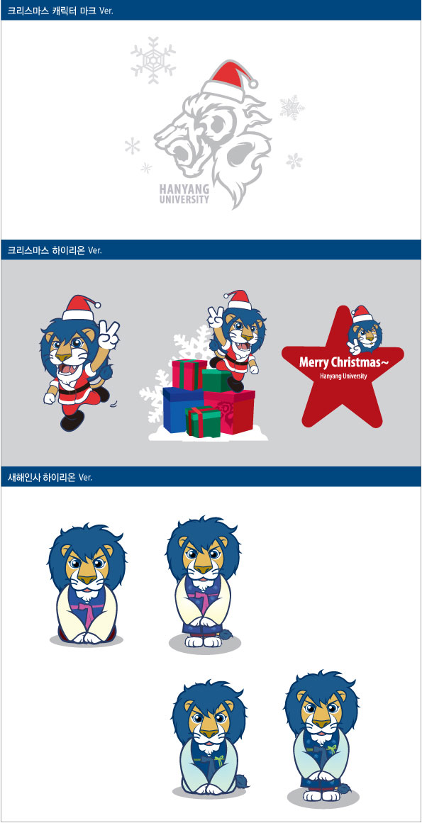 한양대학교 디자인경영센터는 한양대학교 마스코트인 하이리온과 한양 캐릭터 마크의 겨울 시즌 응용형 이미지를 제작해 배포했다.