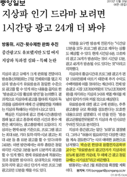 지상파 광고 규제가 크게 완화될 전망입니다. 27일 방통위 전체회의에서 진행된 '방송광고시장 활성화 방안' 논의에서는 지상파 방송사가 유료방송과 동일한 수준으로 광고를 할 수 있게 하는 방안이 나왔는데요. 이른바 지상파에 광고 전체시간만 정해놓고 광고 종류에 따른 시간과 횟수는 제한을 두지 않는 '광고총량제'의 도입입니다. 결과적으로는 지상파에 광고를 몰아줘 지상파 독과점을 심화하며 매체 간 균형발전을 저해하는 지상파 특혜라는 비판이 나오고 있습니다. 박승권 융합전자공학부 교수는 "유료방송의 광고 단가가 지상파의 10%에 불과한 가운데, 두 매체 간 광고 동일 규제는 시기상조"라고 비판했습니다.