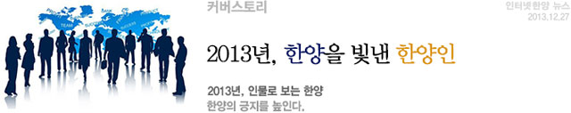 어느 때 보다 눈부시게 발전한 한양. 2013 중앙일보 대학평가와 2013년 전국 대학 지식재산경쟁력 평가, 2012년 공공연구기관 기술이전 조사결과, 2013 국가고시 성적에서 전통명문 한양의 명맥을 유지했다. 한양인의 노력과 발전이 있어 가능했다. 각자의 자리에서 꺼지지 않는 열정의 빛으로 올해를 빛낸 한양인들의 소식을 모았다.