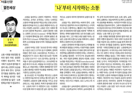 1월 1일자 <서울신문>에서는 2014년 새해의 과제로 '악순환을 깨뜨리고 소통하는 대한민국'을 제안하는 기고글이 실렸습니다. 김정기 정보언론대학원 교수는 "소통을 막는 권위주의를 버리고 상대와의 차이를 존중하고 대화를 통해 화합과 통합을 모색해야 한다"고 말했는데요. 김 교수는 또한 "소통 사회를 뒷받침할 절차와 법의 마련, 엄정한 이행이 필요하다"며 "국회가 토론과 합의를 이끌어 내는 본연의 모습을 찾게 해야 한다"고 조언했습니다.