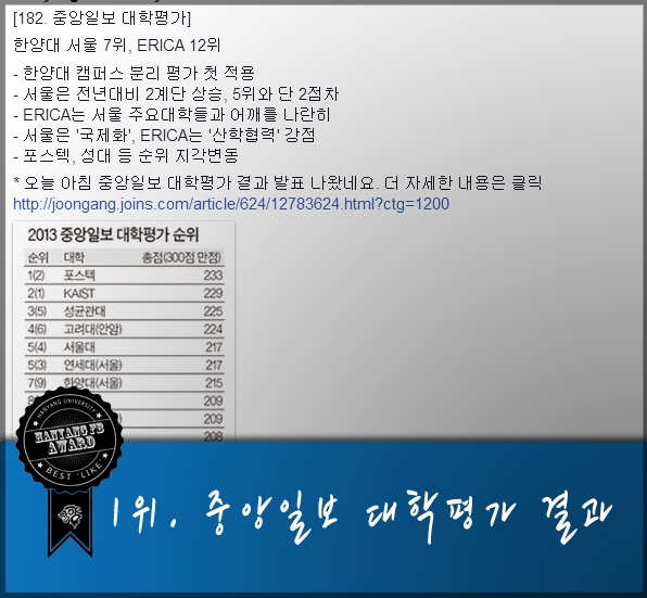 중앙일보대학평가 결과 게시물 1위 … 18만명 넘게 봐