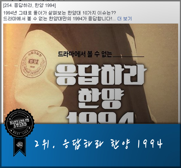 드라마 '응답하라 1994'의 인기에 맞춰 제작된 '응답하라 한양 1994' 게시물도 15000명이 넘게 봤다. 두번째로 높은 확산도를 보였다. 8월 20일, 2학기 개강을 앞두고 지하철역에 비밀 프로젝트를 시도하겠다는 글에는 이래적으로 좋아요가 2천개를 넘어서서 큰 호응을 얻기도 했다.