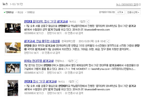 | ▲ 온라인매체에 실린 '한양대 예체능대학 실기고사' | ||