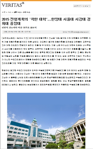 또한 전형계획 공개도 지난 12월 31일 33쪽 분량의 '2015학년 수시/정시 전형계획'을 발표하여 타 대학에 비해 상세하면서도 빠른 정보공개를 실천했습니다.