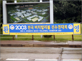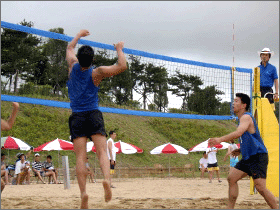 지난 22일 안산캠퍼스 대운동장 옆에 위치한 비치발리볼 경기장에서는 '2003 전국 비치발리볼 선수권대회'가 개최됐다. 대한배구협회가 주관한 이번 대회는 8강 토너먼트 방식으로 진행된 남자일반부 4개조 리그와 풀 리그전으로 진행된 여자일반부의 경기 그리고 2개조 리그 방식의 남녀고등부 경기로 구성됐다.