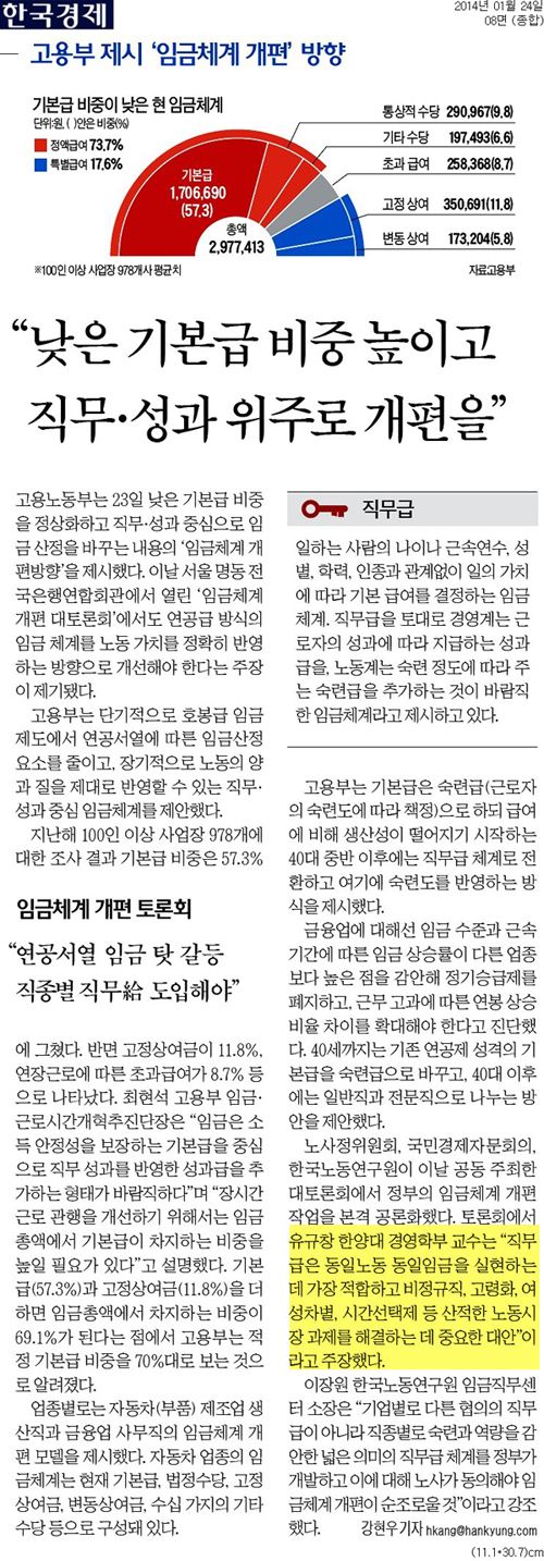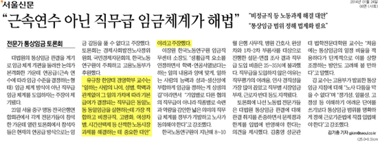 지난 23일 서울 전국은행연합회관에서 '임금체계 개편 대토론회'가 개최되었습니다. 토론회에서는 향후 임금체계 대안으로 '직무,성과급제 도입'이 주되게 제시되었는데요. 토론회에 참석한 유규창 경영학부 교수는 '한국기업의 임금체계:직무급이 대안인가'라는 주제로 "정년 60살 법제화가 코앞에 다가와서 시급히 도입해야 할 대안들이 있다. 금피크제는 단기 대안으로 가능하지만 장기적으로 바람직하지 않고 오래갈 수도 없다"며 "고도성장기를 지났고 임금수준이 높아진 상황에서 직무급 도입은 시급한 문제"라고 말했습니다. 토론회와 유규창 교수의 소식은 <한겨레>, <서울신문>, <한국경제>를 통해 전해졌습니다.