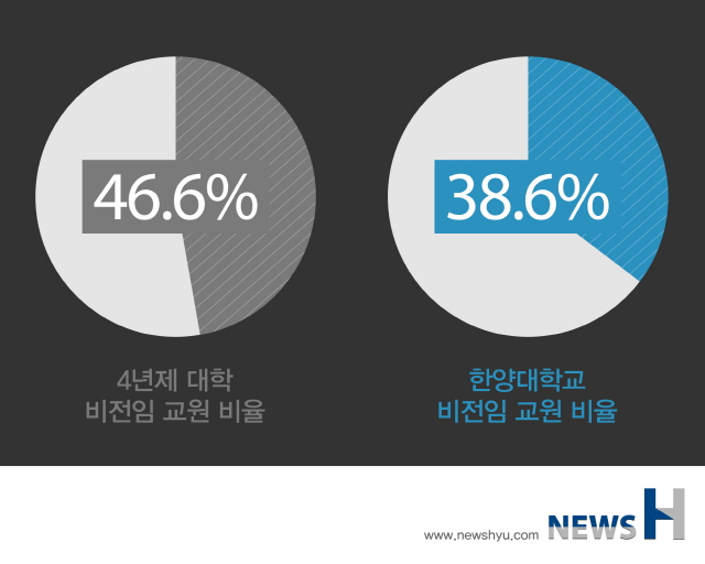 | ▲ 비전임 교원 비율 (좌, 4년제 대학평균 / 우, 한양대) | ||